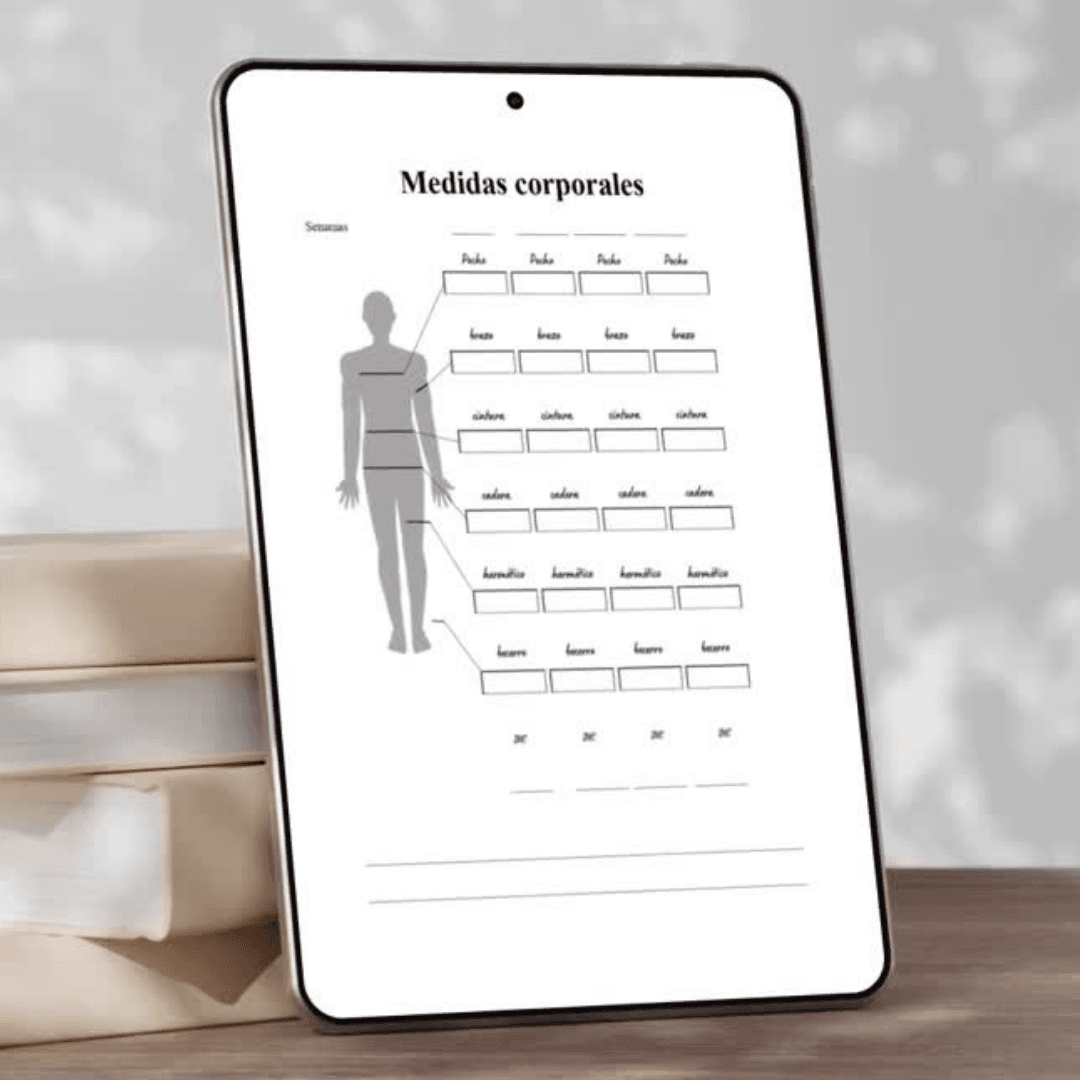 – Tablas de seguimiento: Registra tu progreso de peso, medidas corporales, actividad física y reflexiones personales.